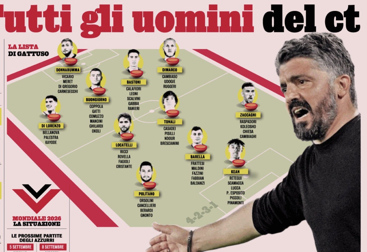 Дженнаро Гаттузо составил перечень из примерно 50 футболистов, которые могут попасть в состав национальной команды Италии.
